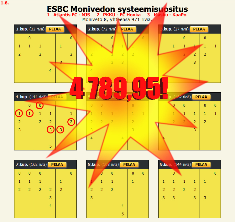1.6. Suomifutiksen voittoputki jatkui Kakkosen puolella poikkeuksellisen edullisen ideajoukkueemme Maskun voiton myötä 4 789,95!